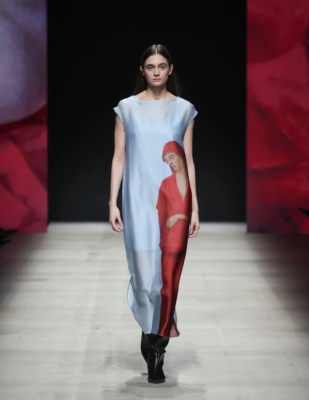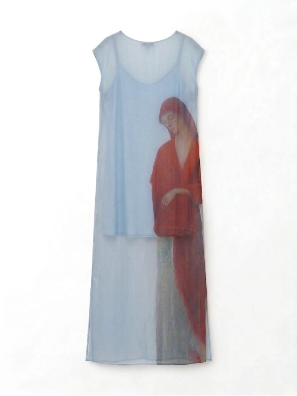 Авторский принт на платье — про силу и мягкость, олицетворение женских образов, которые так часто изображал художник в своих работах. Лаконичное по форме, с ярким принтом-акцентом, с вырезом-лодочкой, без застежек, по бокам разрезы. В комплекте — нижнее платье на регулируемых бретелях.
