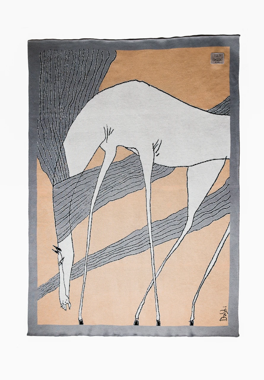 Новая коллаборация художника Даши Намдакова и бренда TELO — это плед, сотканный по картине, созданной специально для проекта. Лошадь на текстиле — символ грядущего 2026 года. Её̈ образ наполнен движением, мощью и гармонией природы.