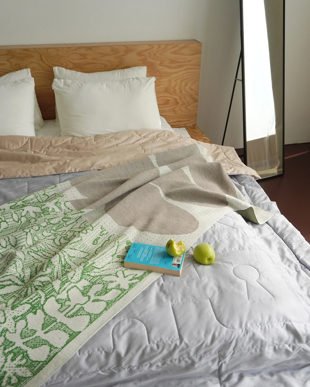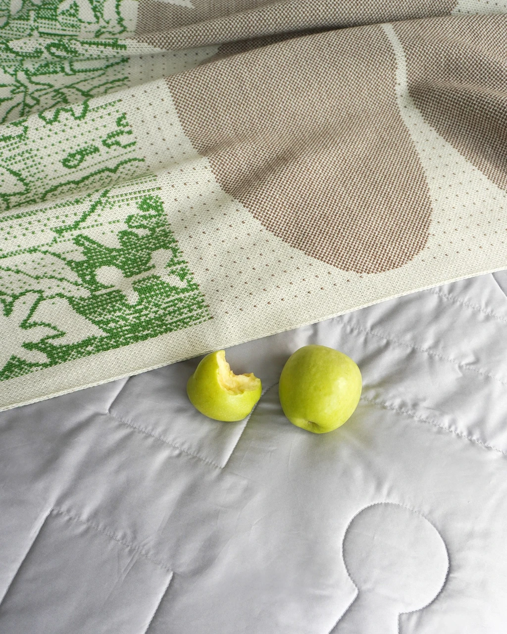 Цвет: бежевый, зеленый. Рисунок расположен на лицевой стороне пледа.