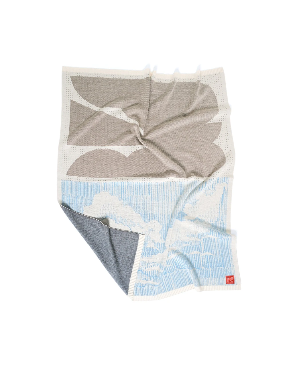 Цвет: бежевый, голубой. Рисунок расположен на лицевой стороне пледа.