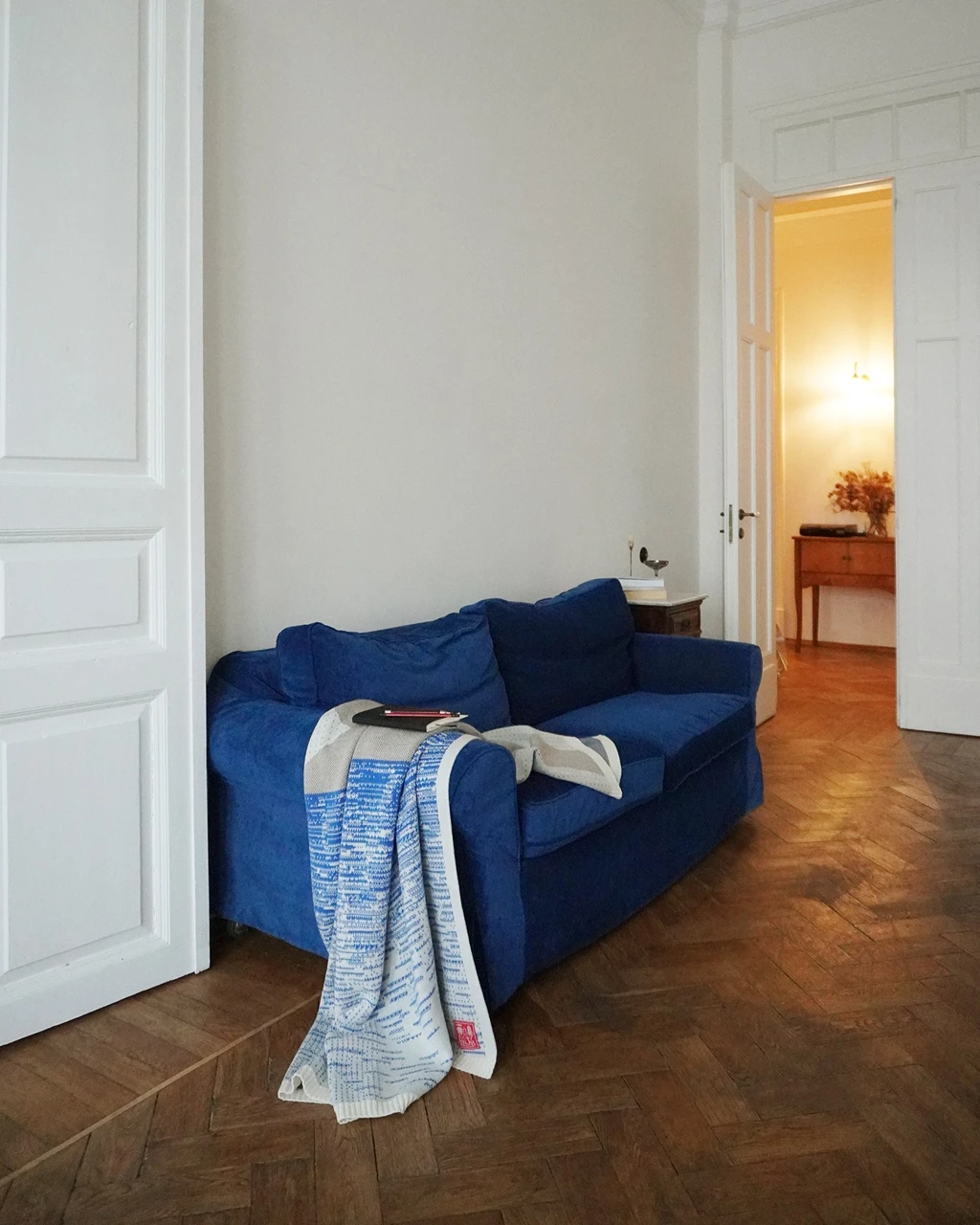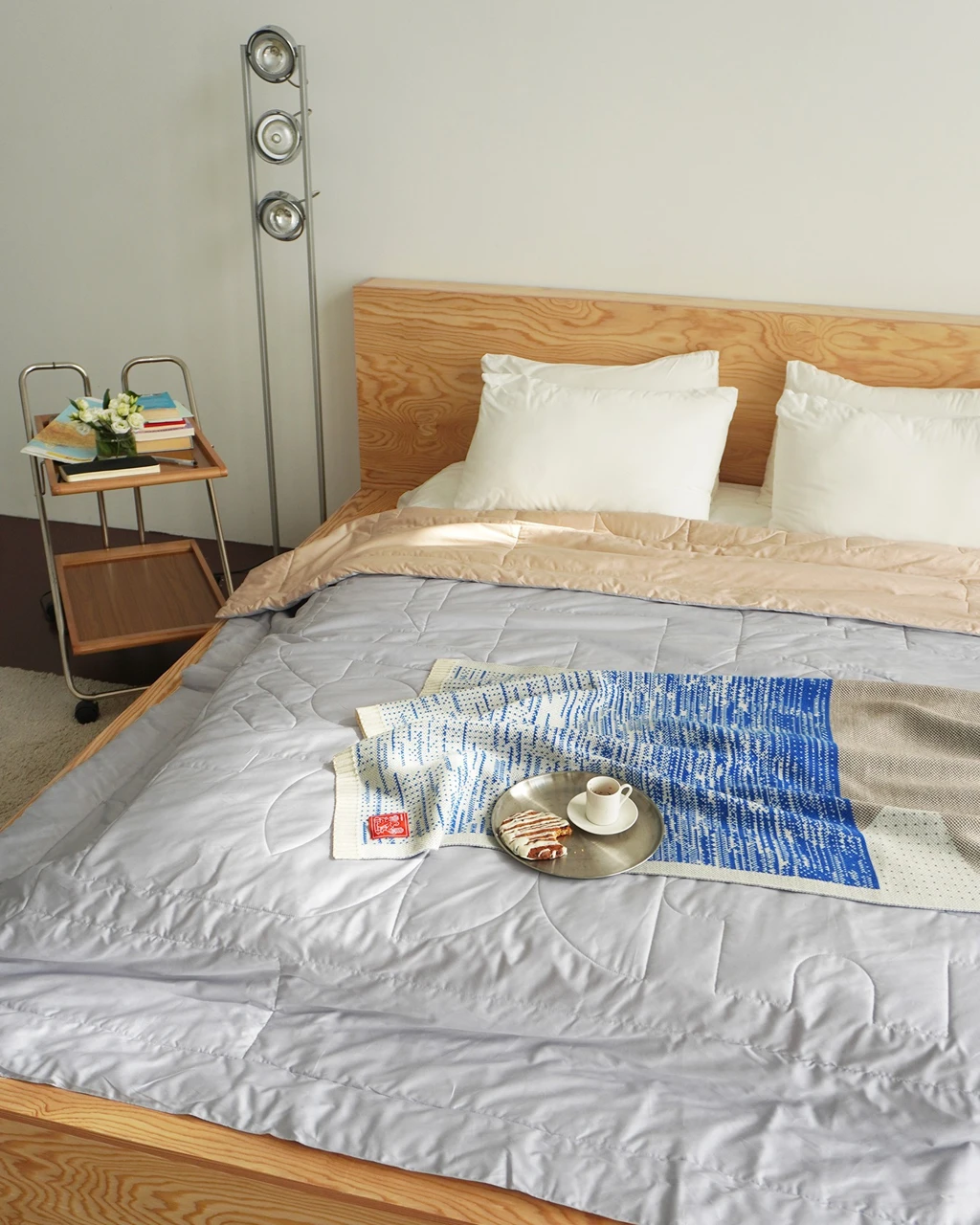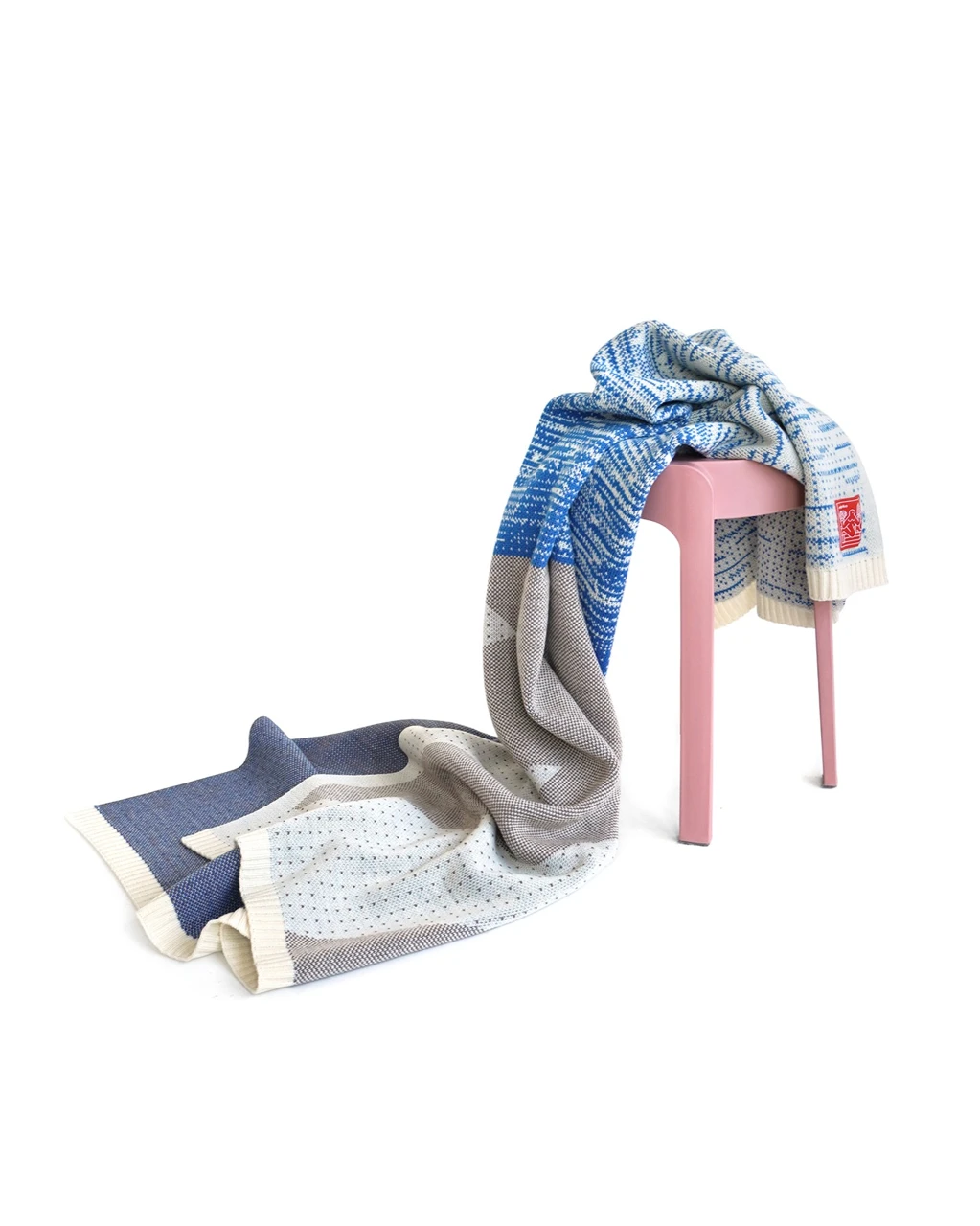 Цвет: бежевый, синий. Рисунок расположен на лицевой стороне пледа.