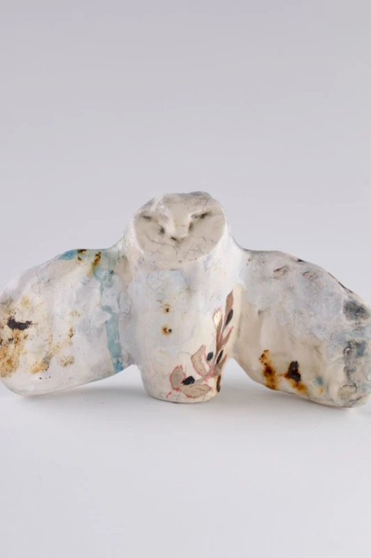 Подсвечник под классическую столовую свечу в виде совы с расправленными крыльями.