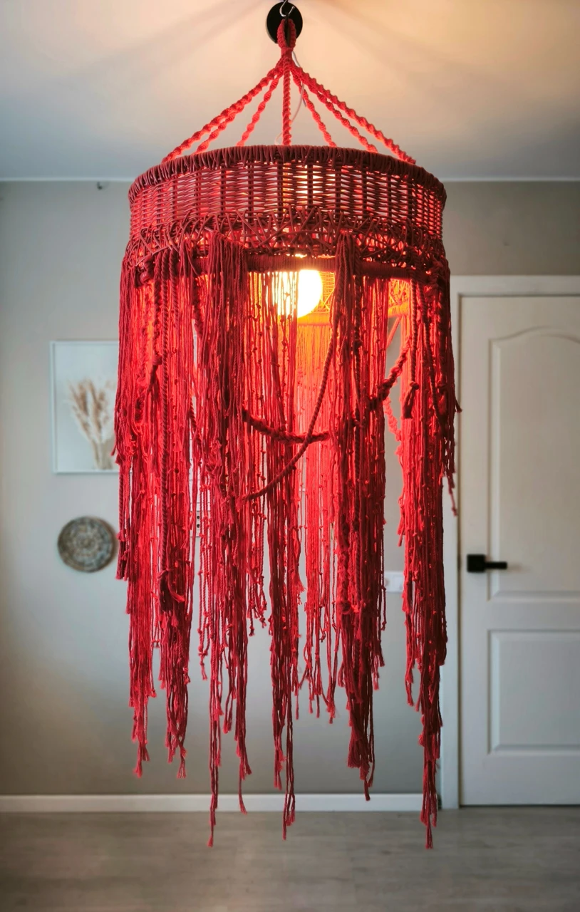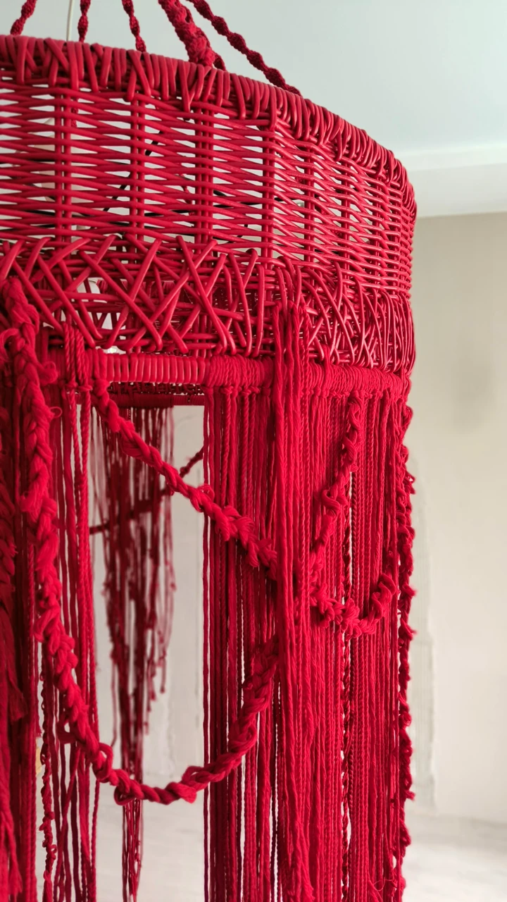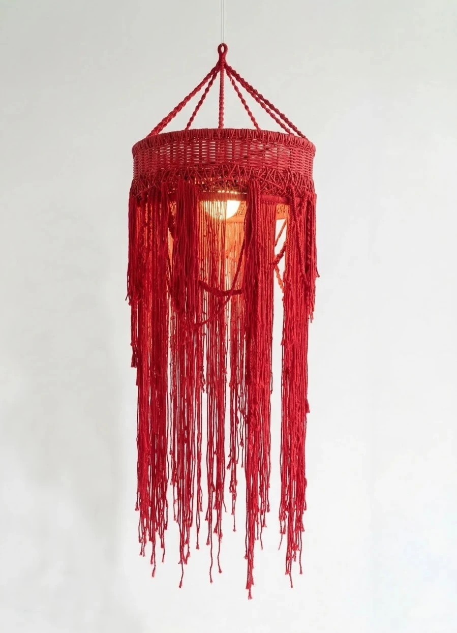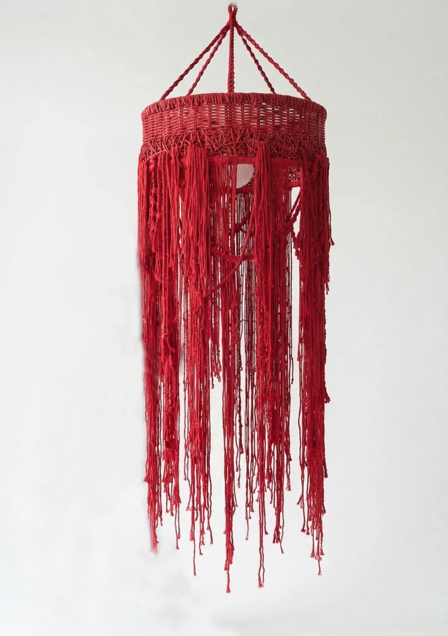 Красный подвесной светильник с длинными ниспадающими нитями создаст приятную расслабляющую атмосферу в вашем доме. Плетеный абажур прекрасно подходит для зоны над обеденным столом или для высоких пространств, (лестница, второй свет).
