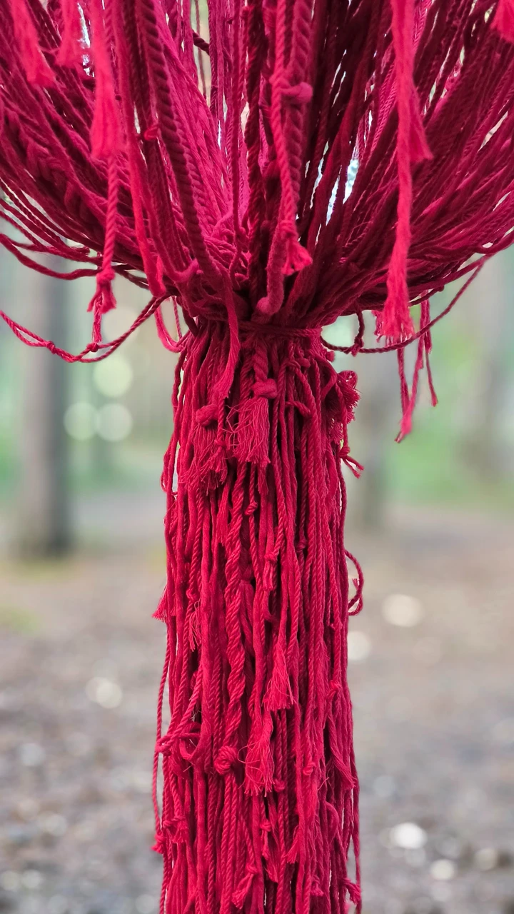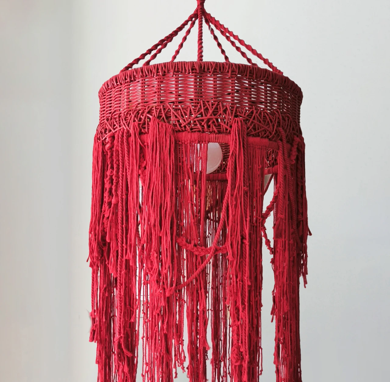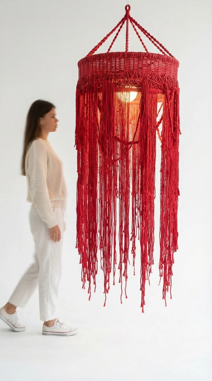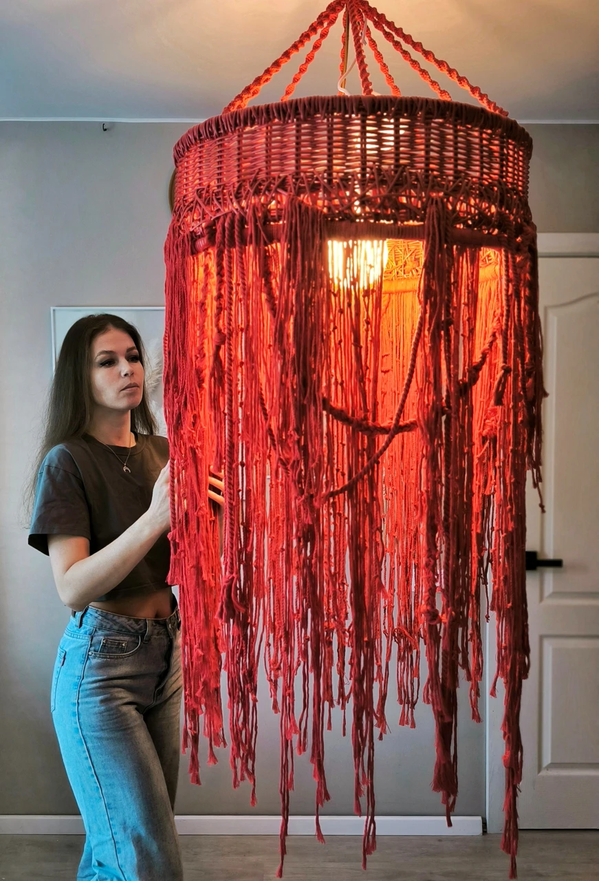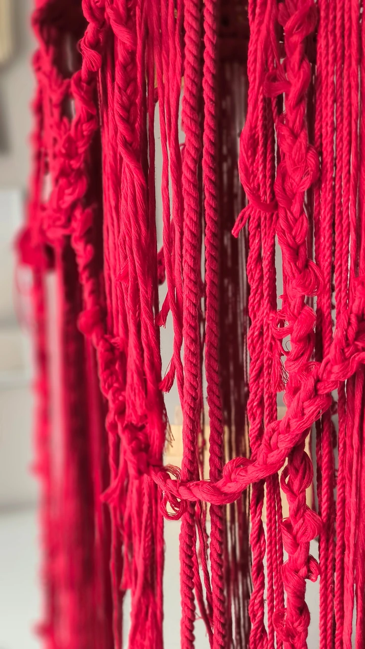Красный подвесной светильник с длинными ниспадающими нитями создаст приятную расслабляющую атмосферу в вашем доме. Плетеный абажур прекрасно подходит для зоны над обеденным столом или для высоких пространств, (лестница, второй свет).