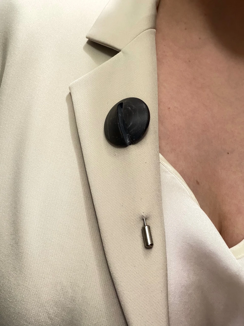 Брошь навеяна современной архитектурой и образом Пакмана — образ поглощения, но в моменте паузы.