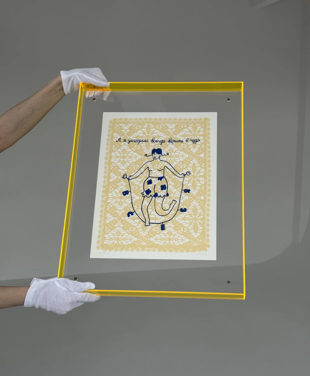 Рама из оргстекла с эффектом парящего изображения в цвете желтый неон