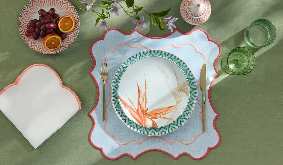 Салфетка подстановочная из 100% голубого льна, с фигурной цветной вышивкой по краю и внутри. Коллекция названа в честь изящной Марии Антуанетты, которая была главной законодательницей моды в эпоху Рококо. Ее уникальный утонченный стиль мы воплотили в одноименной коллекции.