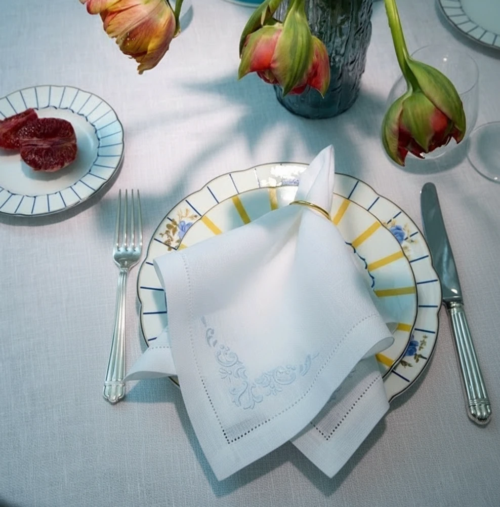 Салфетка сервировочная из 100% белого льна с изящной голубой вышивкой. Коллекция Marion, вдохновленная элегантностью Марион Котийяр, воплощает дух современного французского шика. Нежные, будто акварельные узоры в пастельных тонах создают утонченную игру света и тени, словно кадры из французского кинофильма. Каждое изделие коллекции рассказывает историю об искусстве утонченной классики.