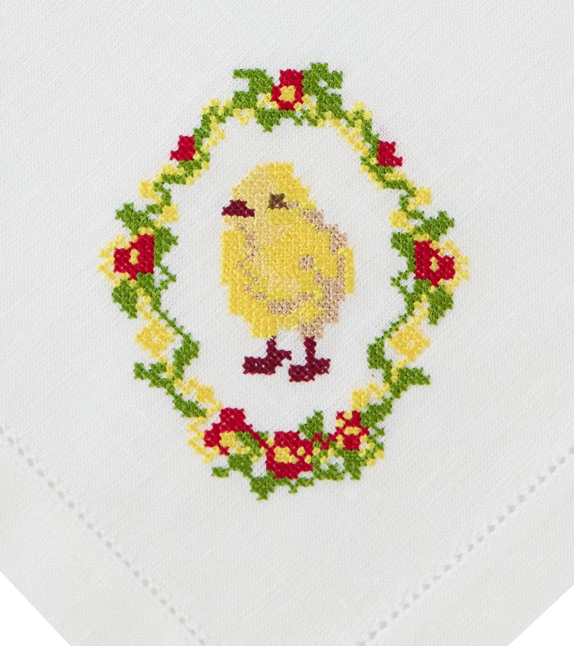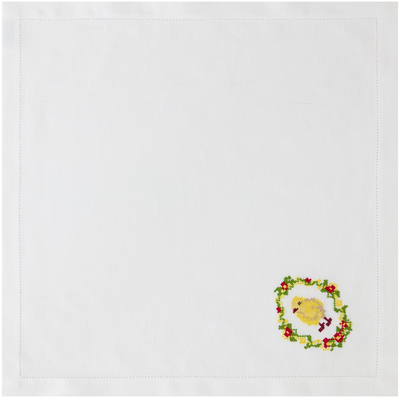 Салфетка сервировочная Цыпленок, 43х43, из 100% льна, мережка, с цветной вышивкой.