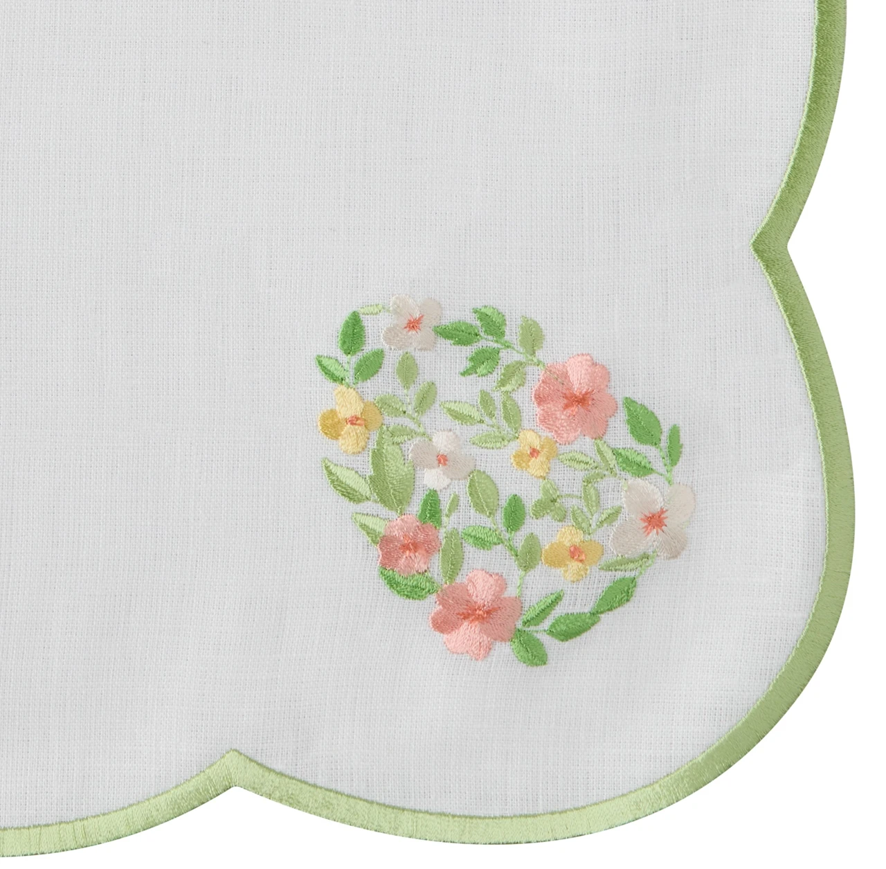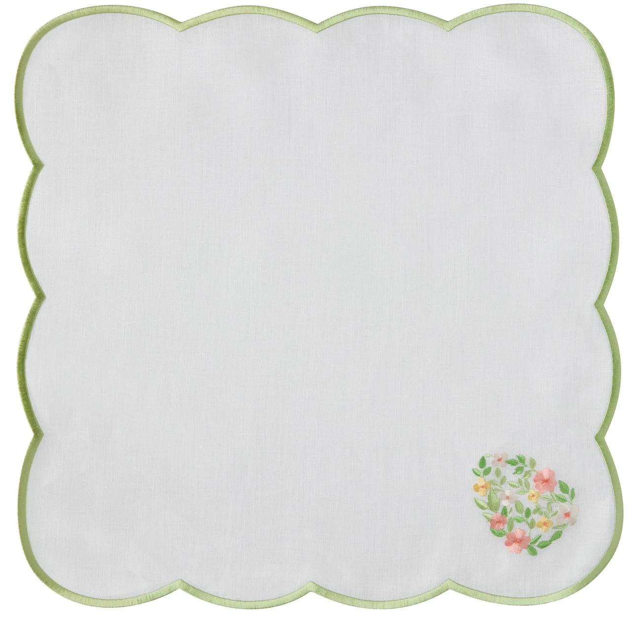 Салфетка сервировочная, 43х43, Весенний цветок их 100% льна, с фигурной вышивкой по краю, с вышивкой цветочного яйцо внутри. Изделия коллекции «Весенний цветок» вышиты будь то распускающиеся бутоны или нежные веточки, которые создают ощущение легкости и воздушности, словно сотканные из самого солнечного света.