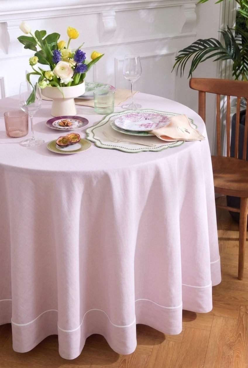 Скатерть круглая D180, из 100% лилового льна с вшивным белым кантом коллекции Сидони-Габриэль Колетт — одна из героинь Прекрасной эпохи. Писательница, актриса и журналистка, Колетт сломала стереотипы и показала на своем примере, как прожить яркую и свободную жизнь в традиционном обществе на рубеже веков. Скатерти из этой коллекции могут быть выполнены как в романтично-нежных оттенках, так и в более строгих вариантах.
