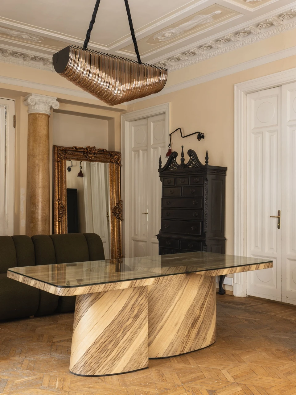 Предметы бренда ОДИНГЕНИЙ представляют собой цельные конструкции, покрытые натуральным шпоном различных пород дерева. Для создания устойчивого покрытия со сложной геометрией, команда в течение нескольких лет разрабатывала уникальную технологию и теперь использует ее для производства ярких самобытных предметов.