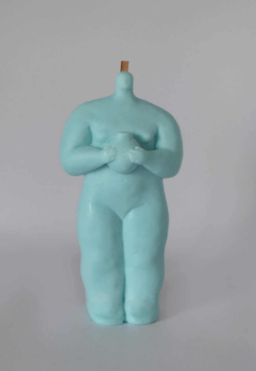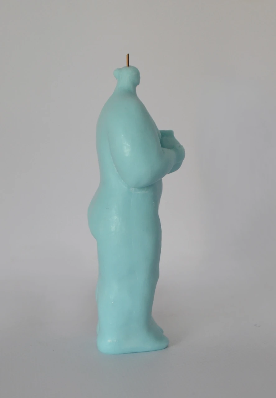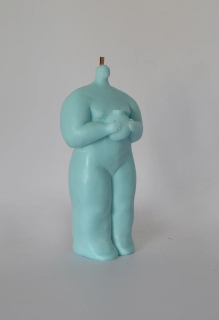 Серия скульптур-свечей создана по мотивам образа Древней богини Весты- хранительницы очага, несущей свет, уют и тепло в дом. Свеча выполнена из натурального растительного воска, при горении нет запаха гари, а лишь легкий, почти нейтральный аромат ванили. Фитиль из дерева вишни издает приятный треск, похожий на треск поленьев у костра.