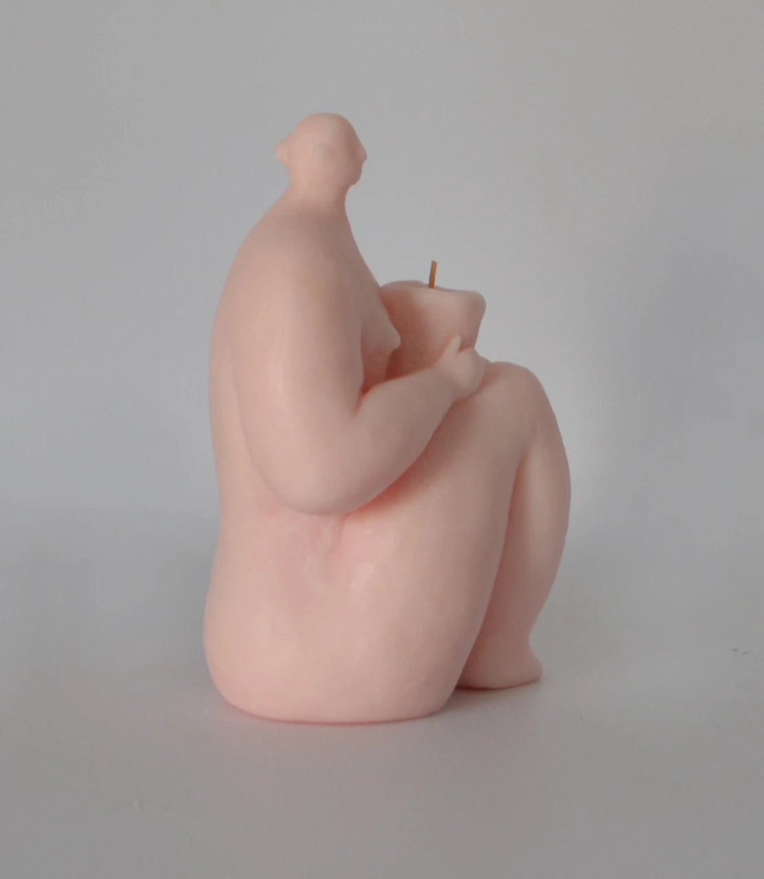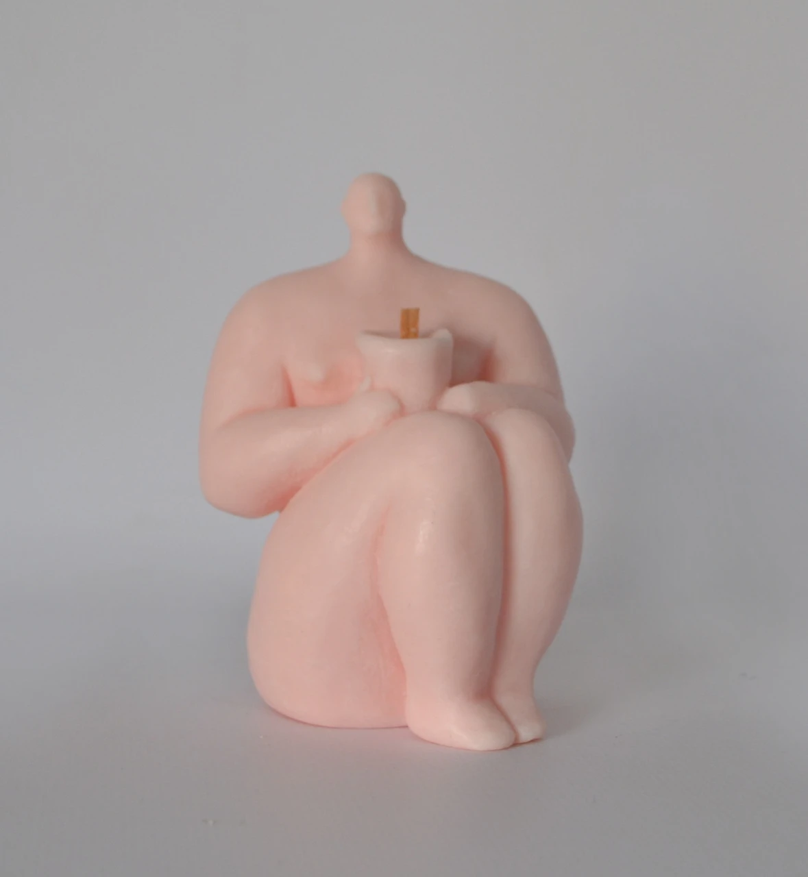 Серия скульптур-свечей создана по мотивам образа древней богини Весты — хранительницы очага, несущей свет, уют и тепло в дом. Свеча выполнена из натурального растительного воска, при горении не имеет запаха гари, а лишь легкий, почти нейтральный аромат ванили. Фитиль из дерева вишни издает приятный треск, похожий на треск поленьев у костра.
