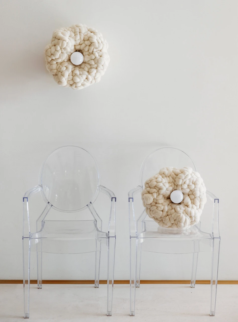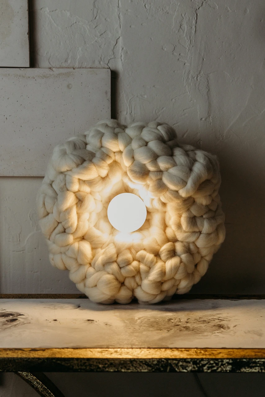 Это уникальное изделие сочетает в себе мягкость текстиля ручной работы и функциональность современного освещения. Форма светильника, вдохновленная цветком, привносит в пространство нотку природы и живости, наполняет комнату мягким и уютным светом.