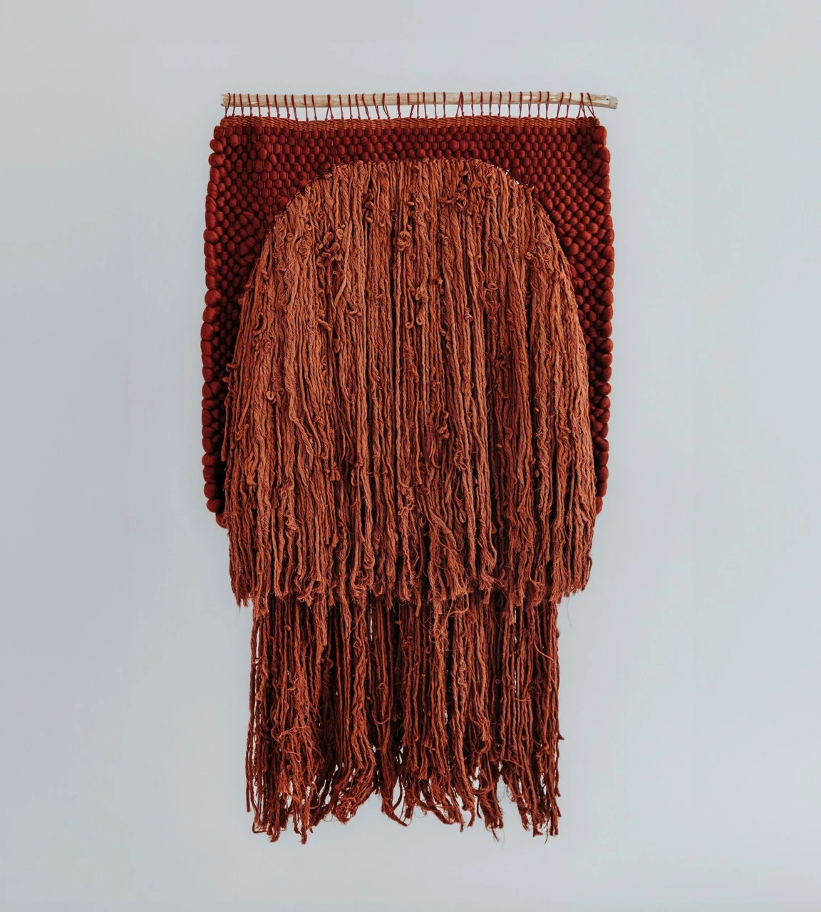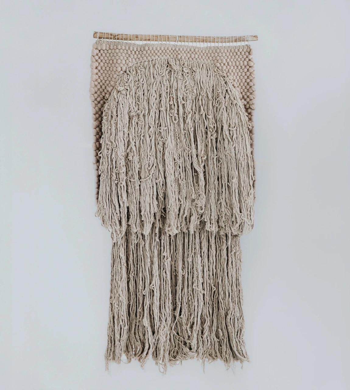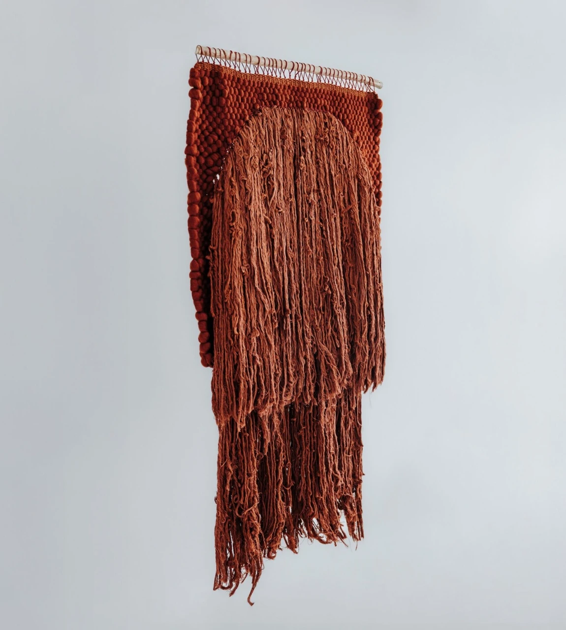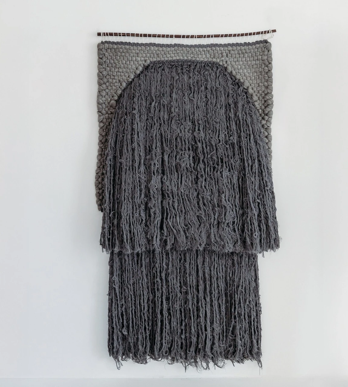 Гобелен «Тайна» являет симбиоз завораживающей текстуры с гармонией и естественностью, как сама природа. В основе работы лежит техника работы с бахромой, которая гипнотизирует зрителя и мистифицирует пространство.