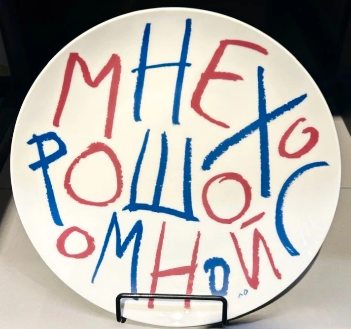 Тарелка с ироничным текстом как арт-объект от Андрея Логвина.