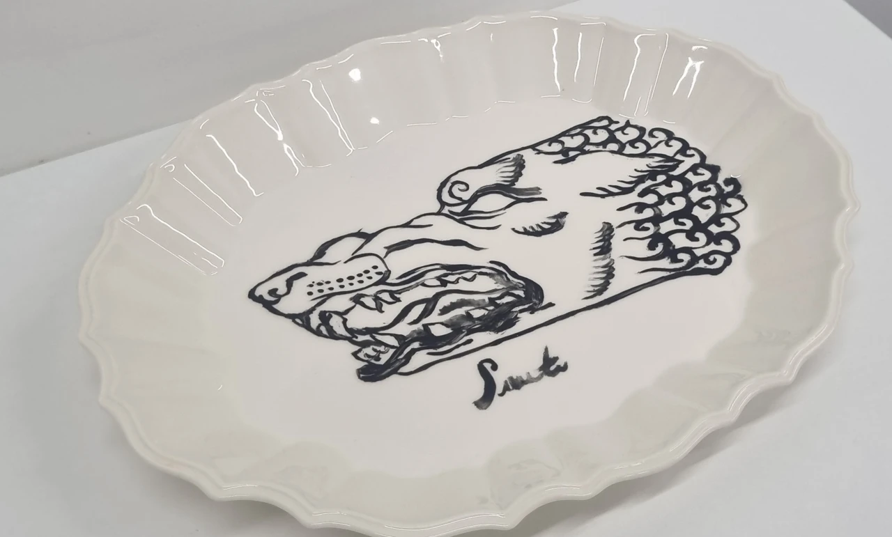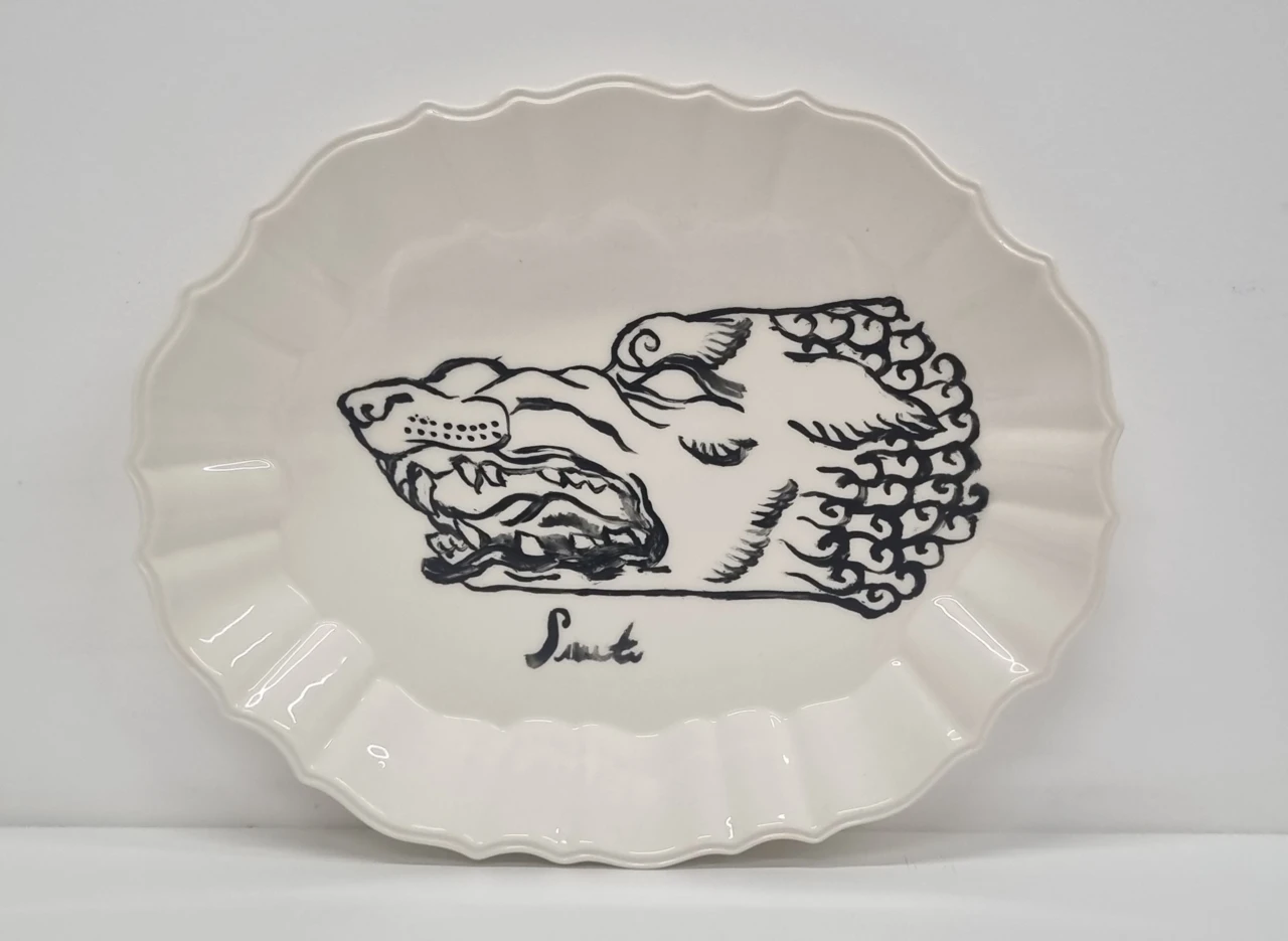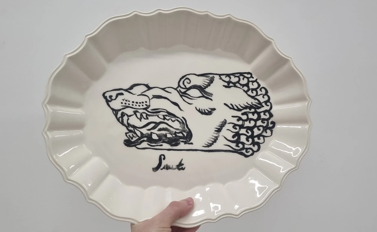 Работа в коллаборации с производством SHAMOT, которые предоставили литую тарелку, эскиз с моей стороны.