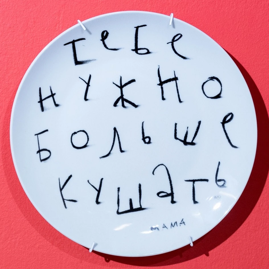 Тарелка с ироничным текстом как арт-объект от Андрея Логвина.