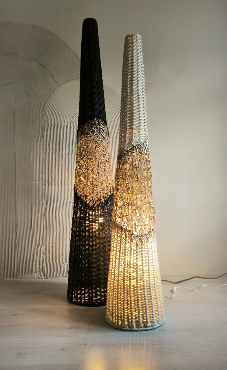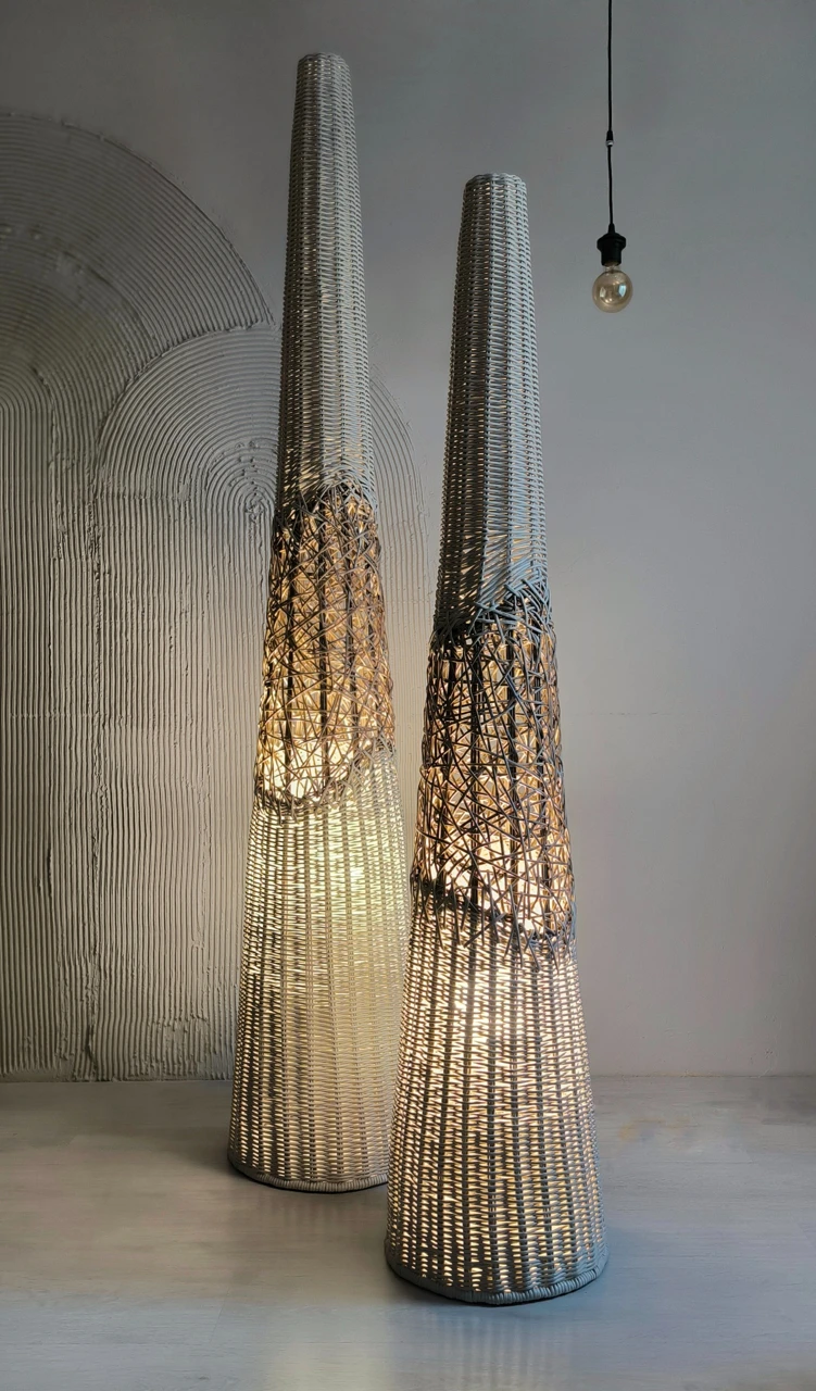 Современные плетеные напольные светильники «Ели» в эко стиле подойдут для создания уютной атмосферы в спальне, гостиной, детской, а так же на веранде, террасе в загородном доме.