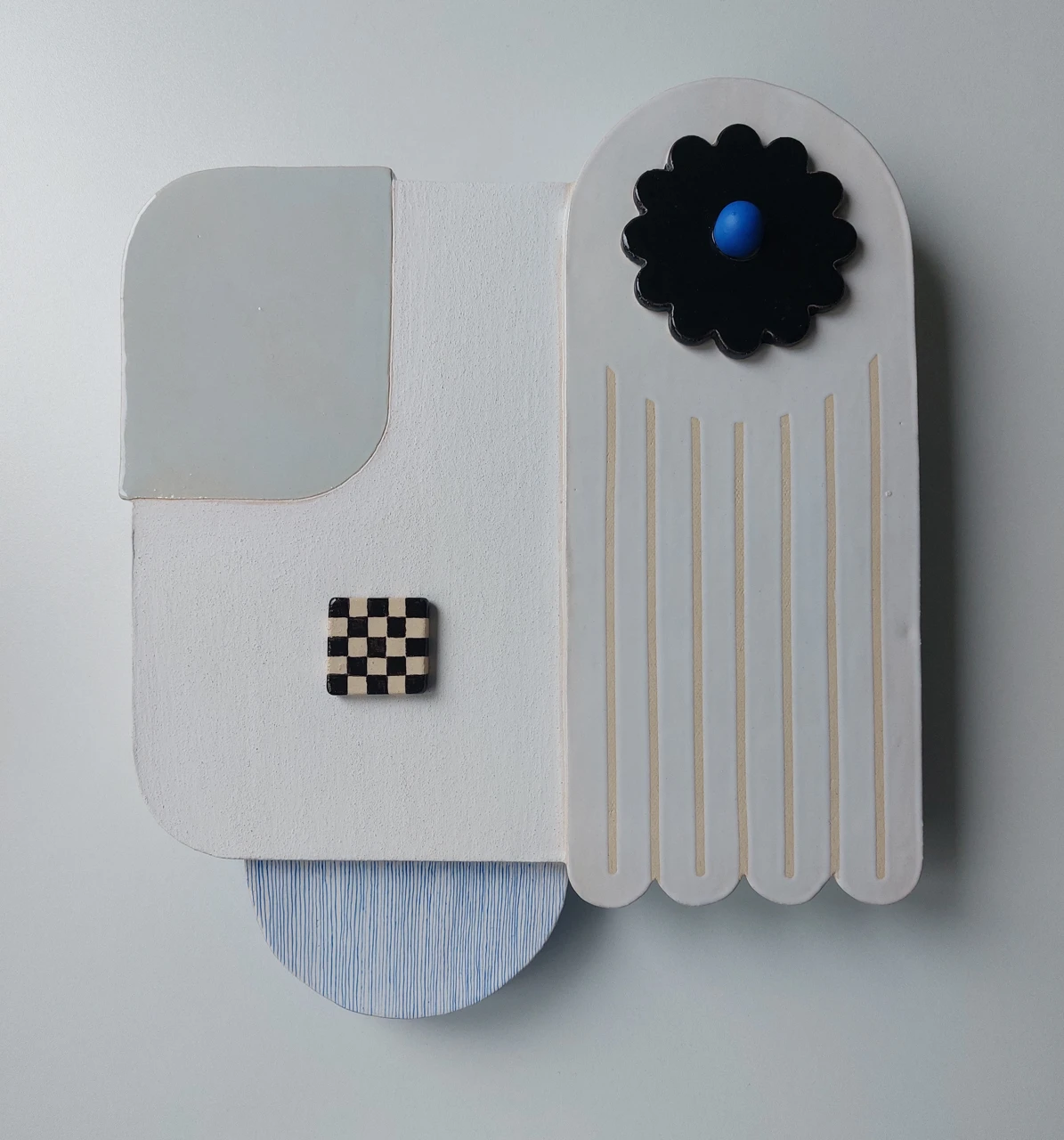 Керамическое настенное панно. Лаконичный белый силуэт панно отдаленно напоминает цветы. Но главное в этой работе музыка визуальных ритмов и цветовых пятен.