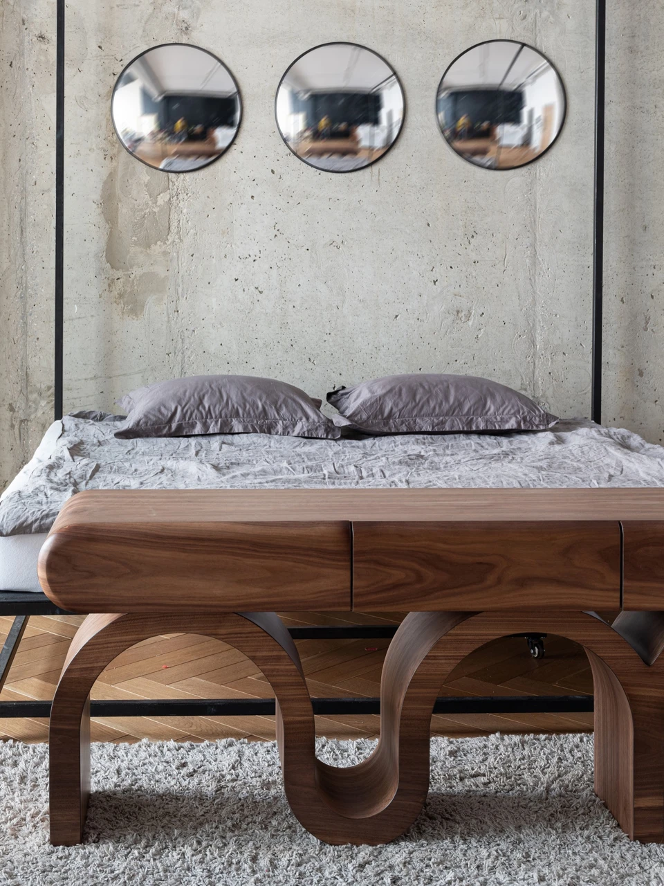 Предметы бренда ОДИНГЕНИЙ представляют собой цельные конструкции, покрытые натуральным шпоном различных пород дерева. Для создания устойчивого покрытия со сложной геометрией, команда в течение нескольких лет разрабатывала уникальную технологию и теперь использует ее для производства ярких самобытных предметов.