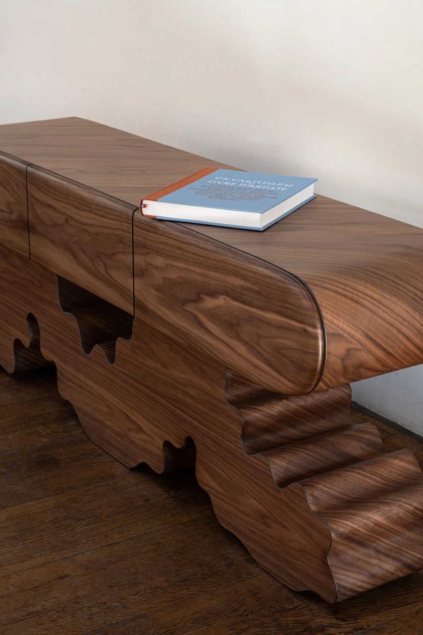 Предметы бренда ОДИНГЕНИЙ представляют собой цельные конструкции, покрытые натуральным шпоном различных пород дерева. Для создания устойчивого покрытия со сложной геометрией, команда в течение нескольких лет разрабатывала уникальную технологию и теперь использует ее для производства ярких самобытных предметов.