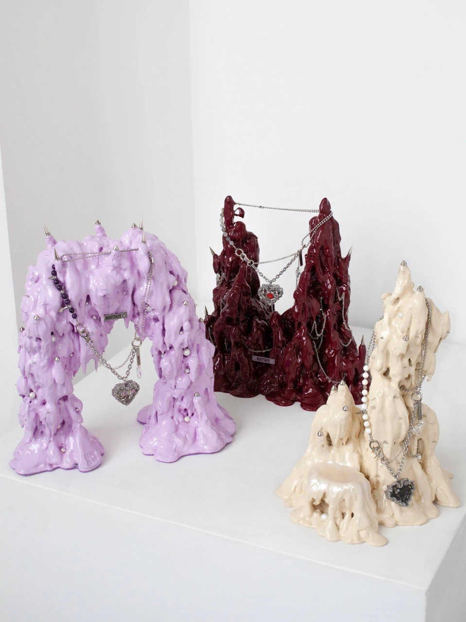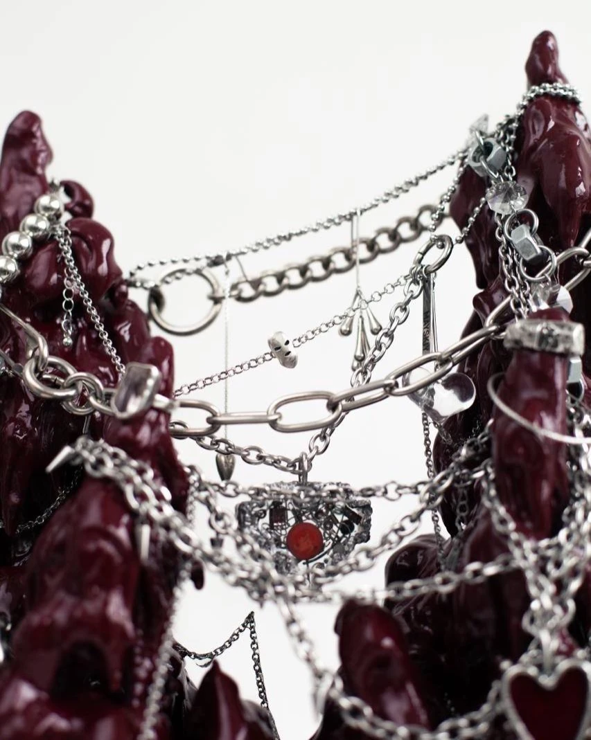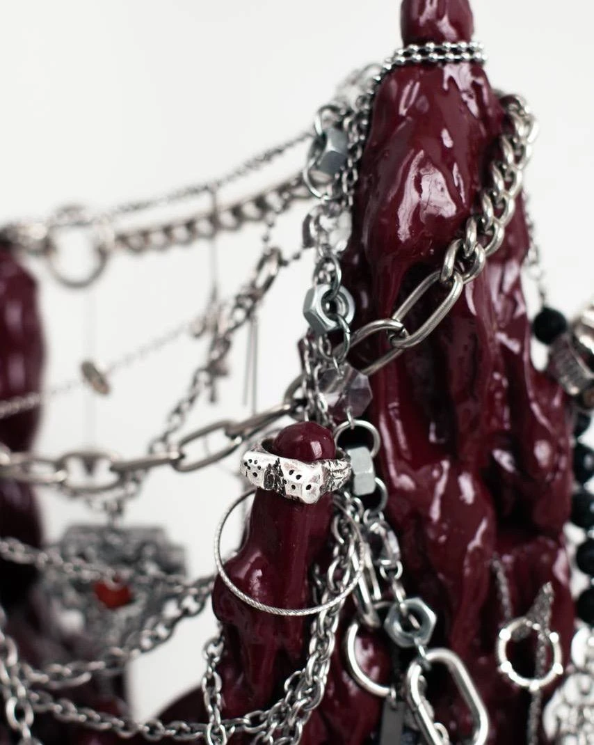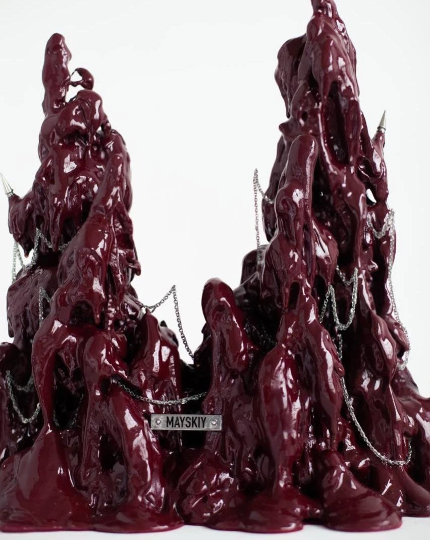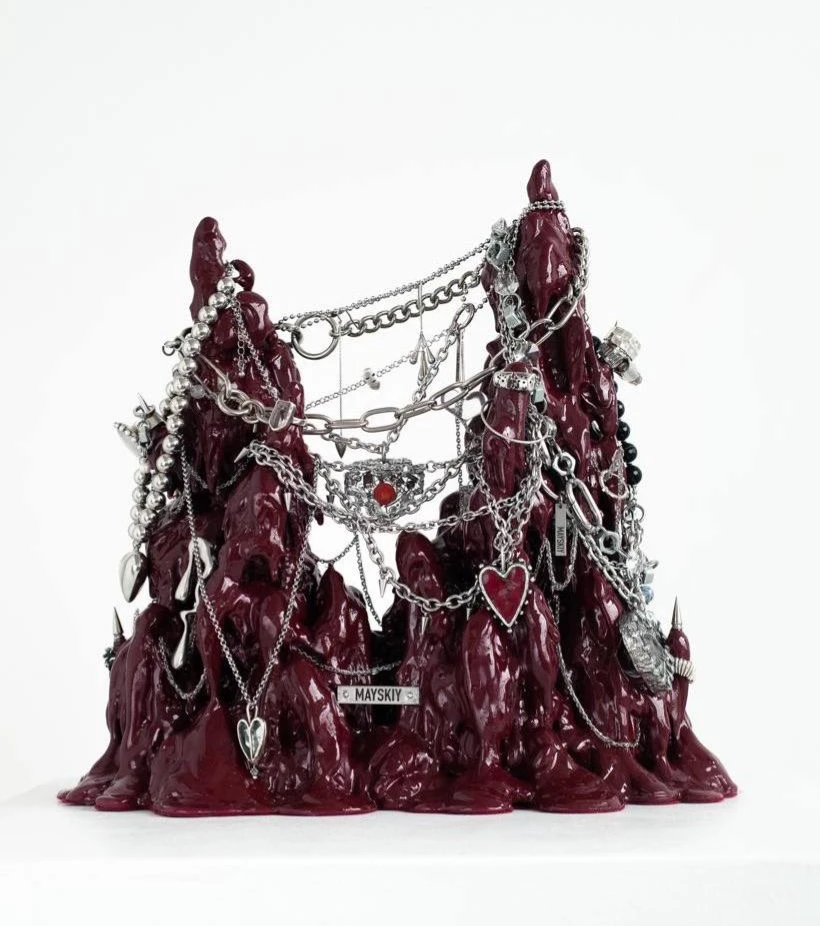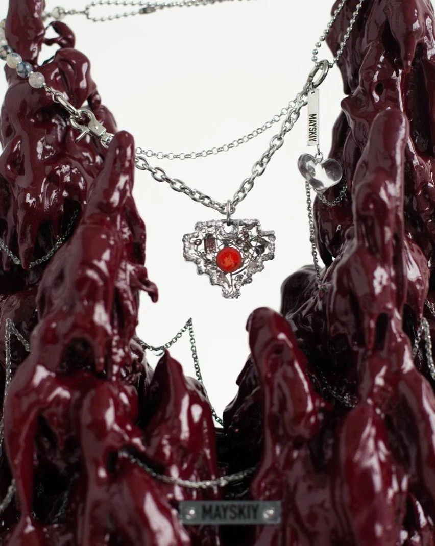 В центре — сердце над пропастью. Уникальное сердце MAYSKIY (Майский), созданное специально для этой серии и идущее в комплекте с подставкой. Оно висит на цепях как маленькая реликвия, которая собирает и хранит истории - ваши, наши и будущие.