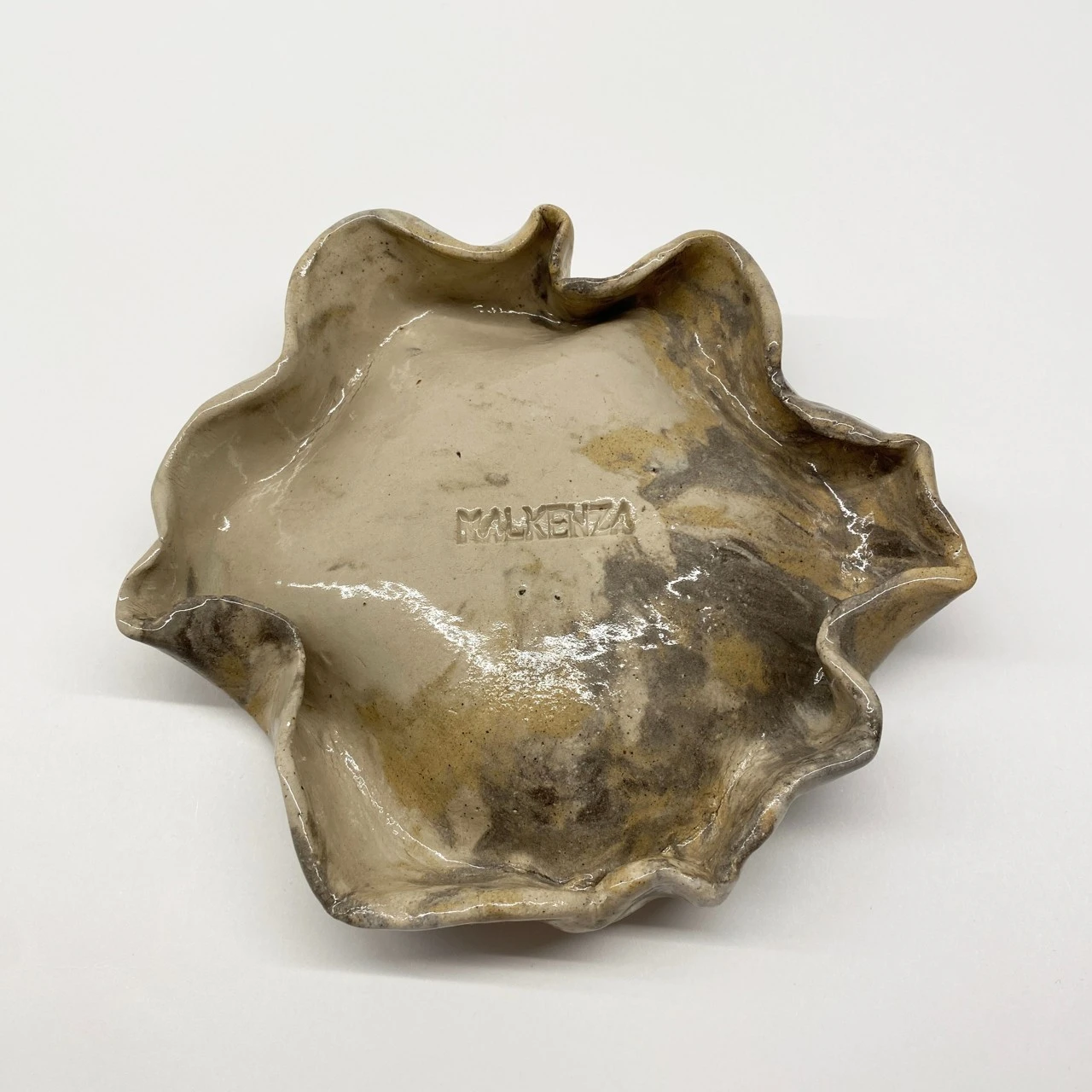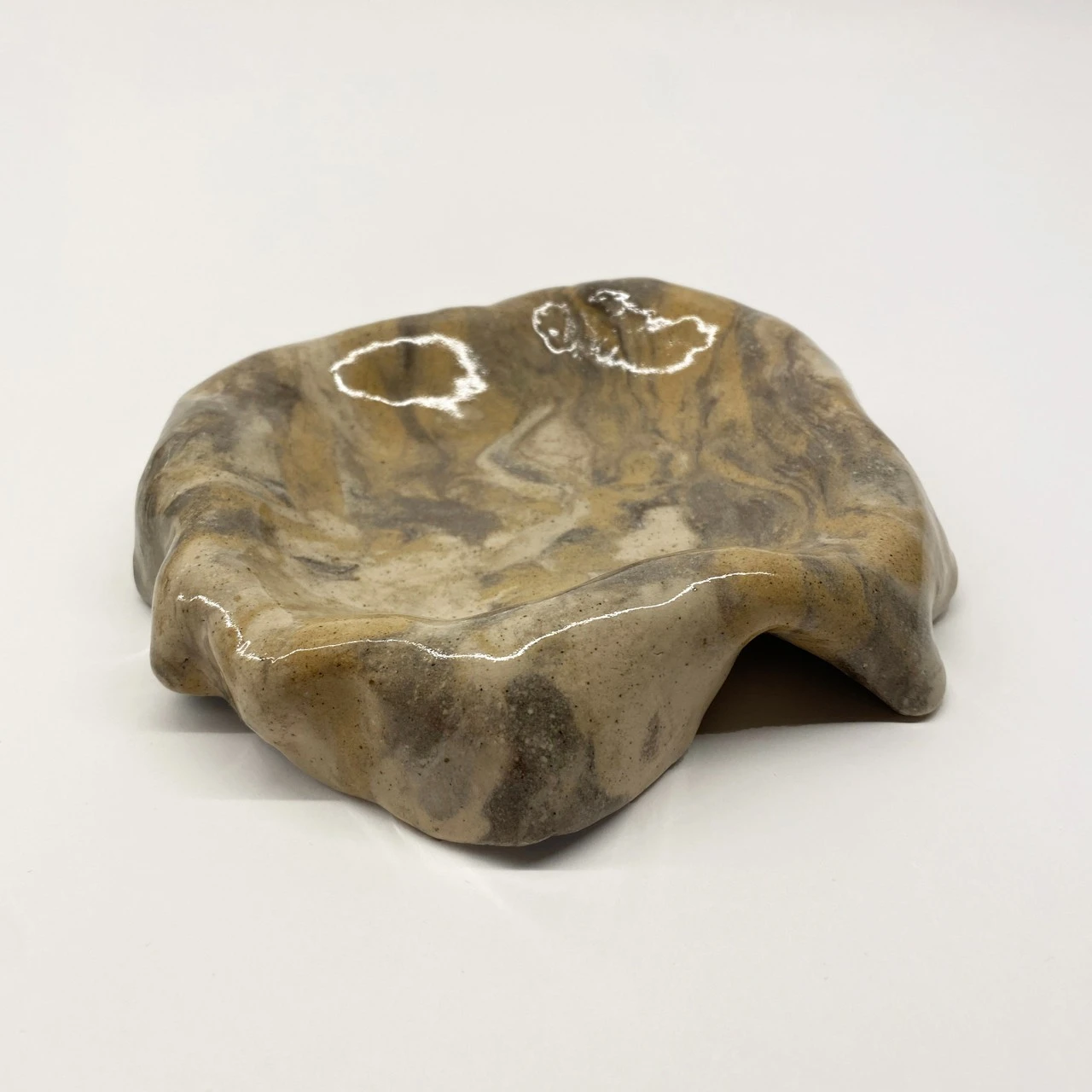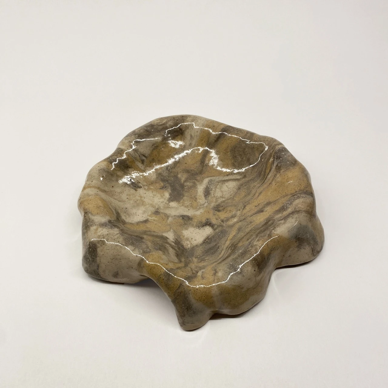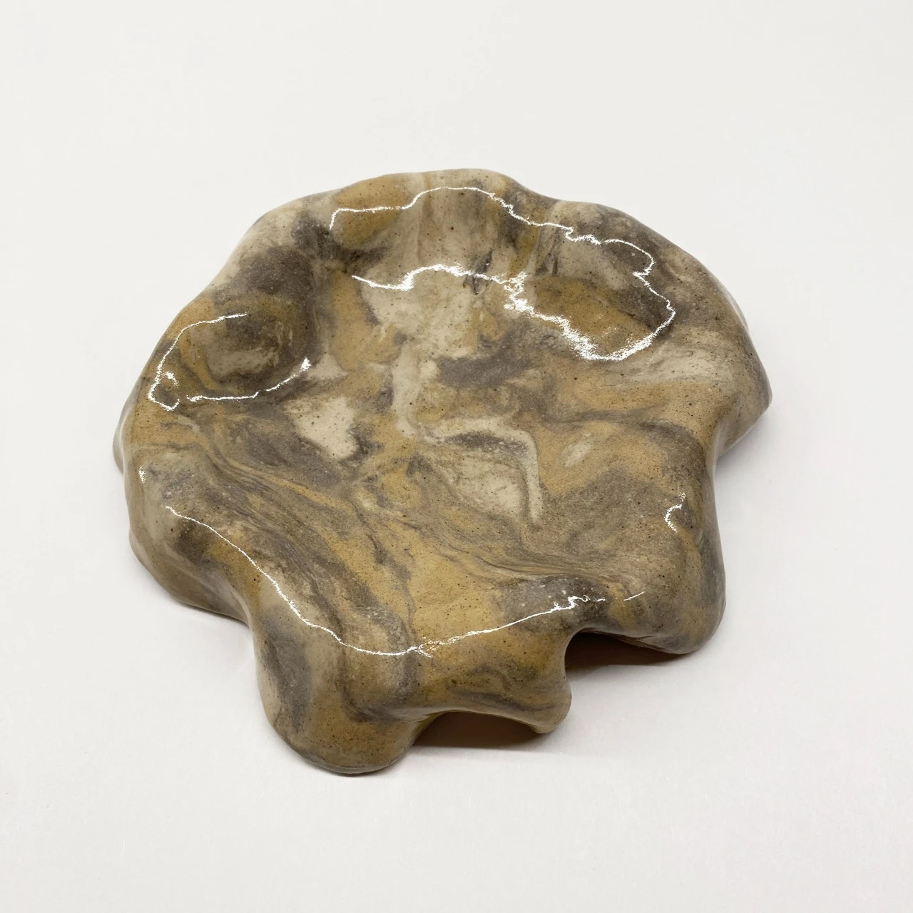 Настольная вазочка из трех глин с мраморной текстурой. Глины из трех стран были смешаны вручную, рисунок случайный и неповторимый. Уникальный. Произведена в Своды ГЭС-2.