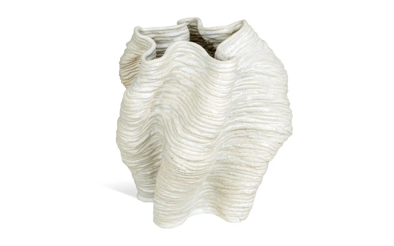 Размеры изделия варьируются от 350 до 400 мм в диаметре и от 300 до 350 мм в высоту — эти пропорции делают вазу выразительным, но вместе с тем гармоничным предметом интерьера.