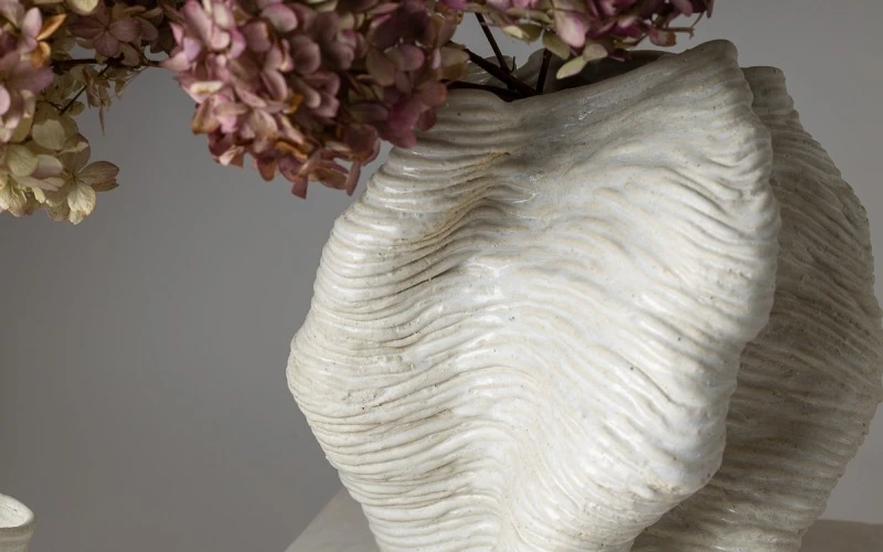 Ваза «Закрытие» — уникальный пример авторской керамики, созданной в сотрудничестве Сергея Уколова и Насти Дуленко. Полностью выполненная вручную из шамотного жгута, она сочетает в себе сложную технику ручной лепки и изысканный художественный замысел.