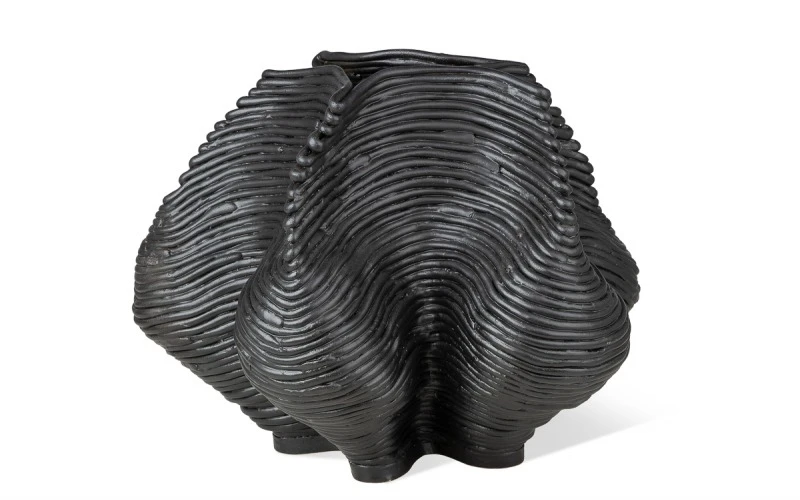 Размеры изделия варьируются от 350 до 400 мм в диаметре и от 300 до 350 мм в высоту — эти пропорции делают вазу выразительным, но вместе с тем гармоничным предметом интерьера.