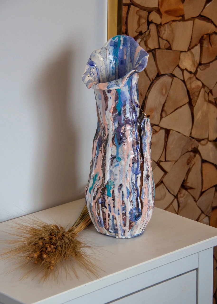 Ручная лепка. Сосуд может использоваться как ваза для сухоцветов, не предназначен для композиций с использованием жидкостей.