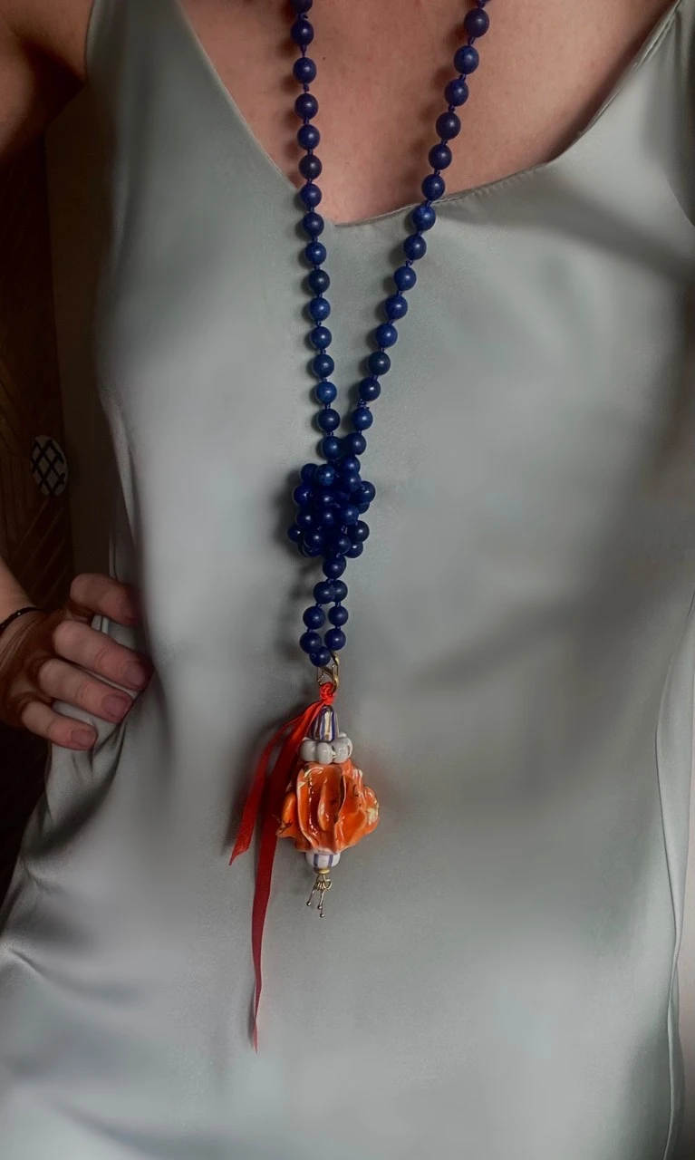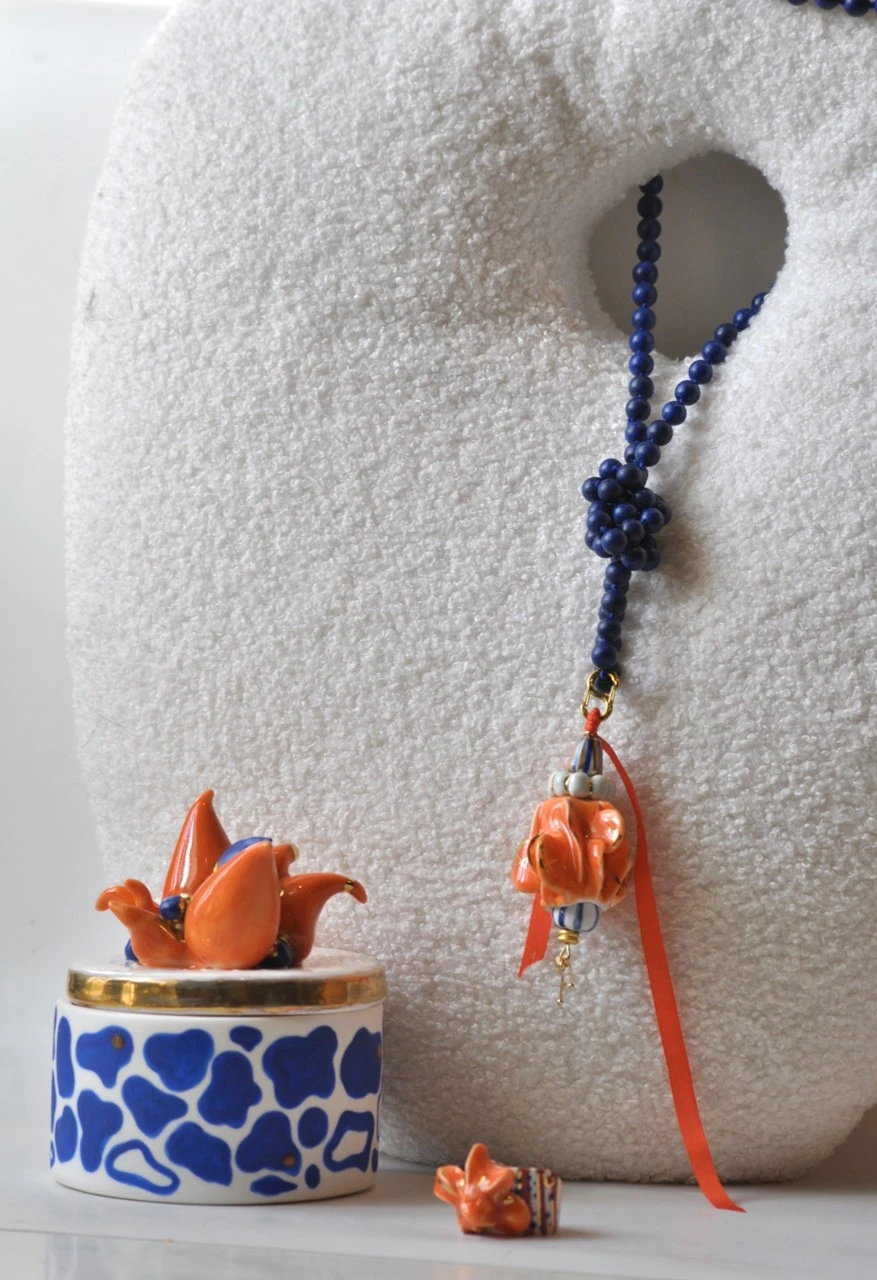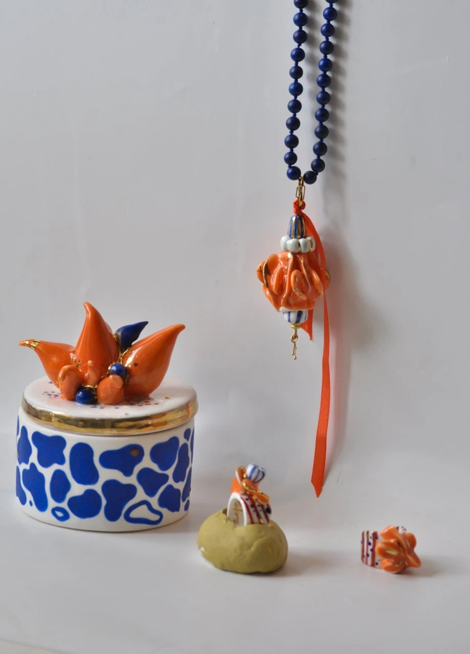 Энергичный сет из 4 предметов: емкость-шкатулка, 2 кольца 18 и 18,5 размера, фарфоровый кулон на ожерелье из лазурита 120 см.